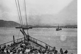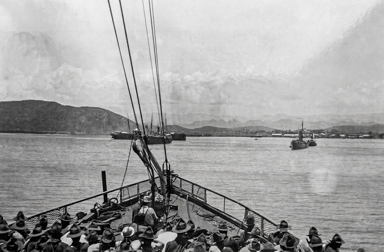 At dawn, July 25, 1898, military surgeon George W. Crile captured this view of Guánica Harbor from the deck of the USS Yale as U.S. troops entered Puerto Rico.